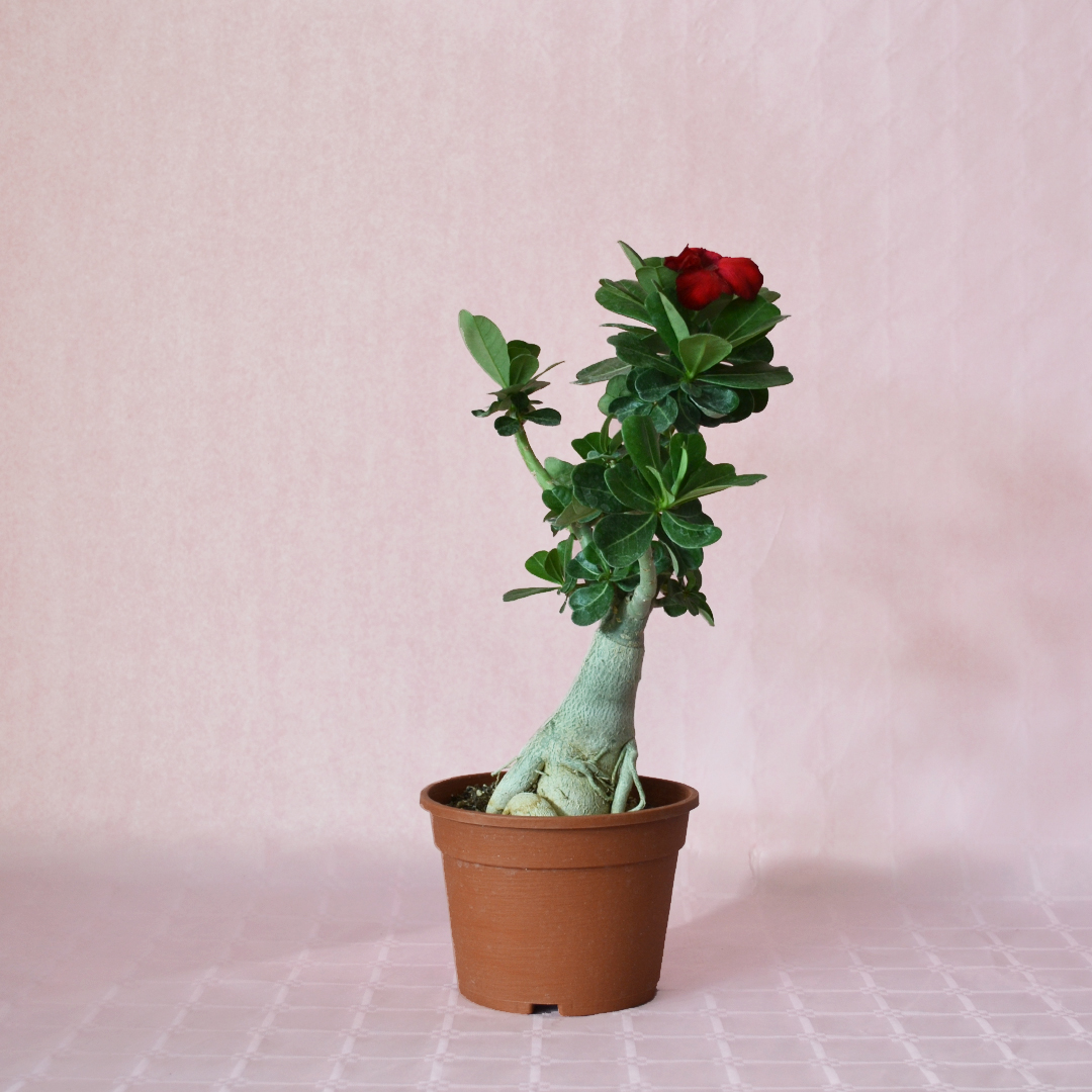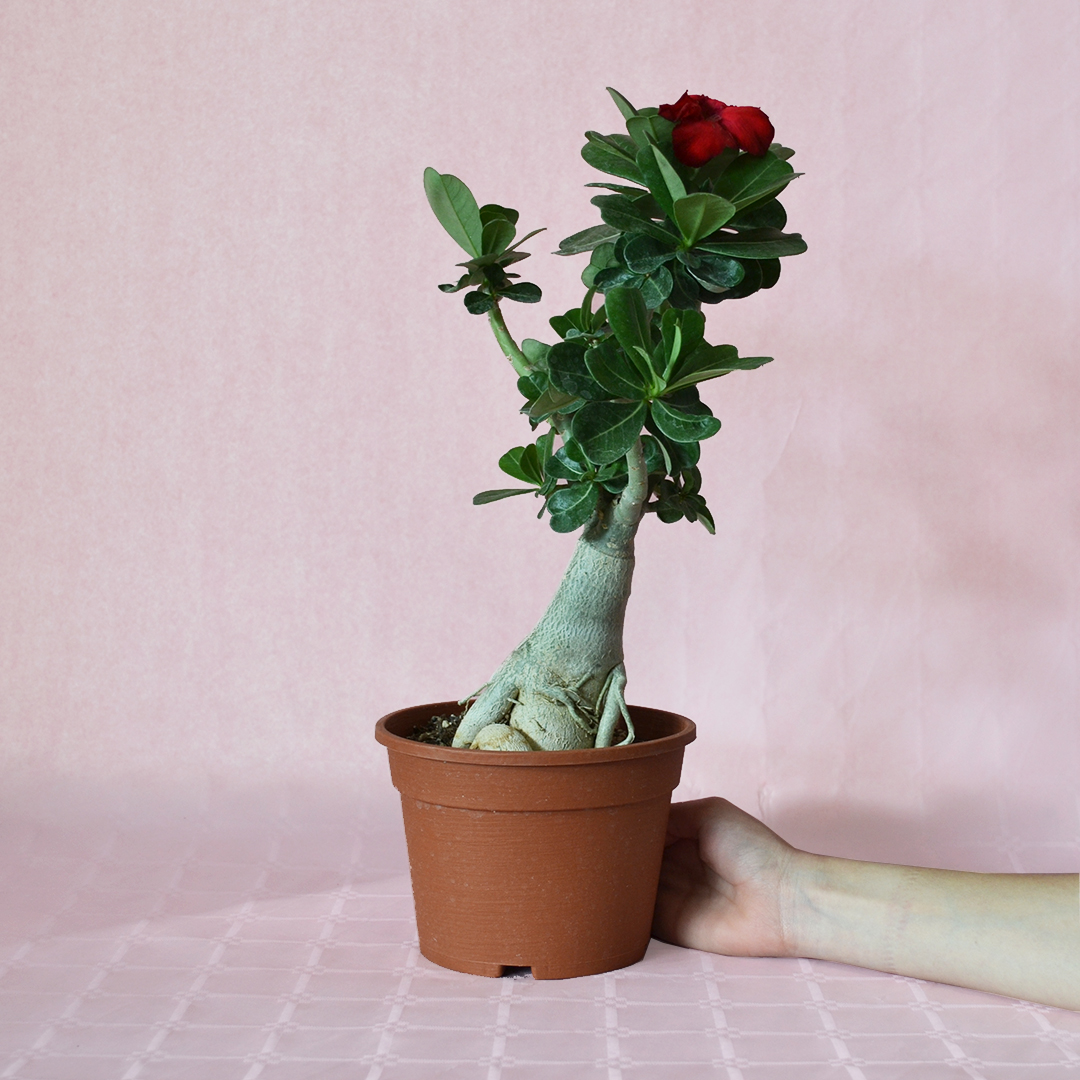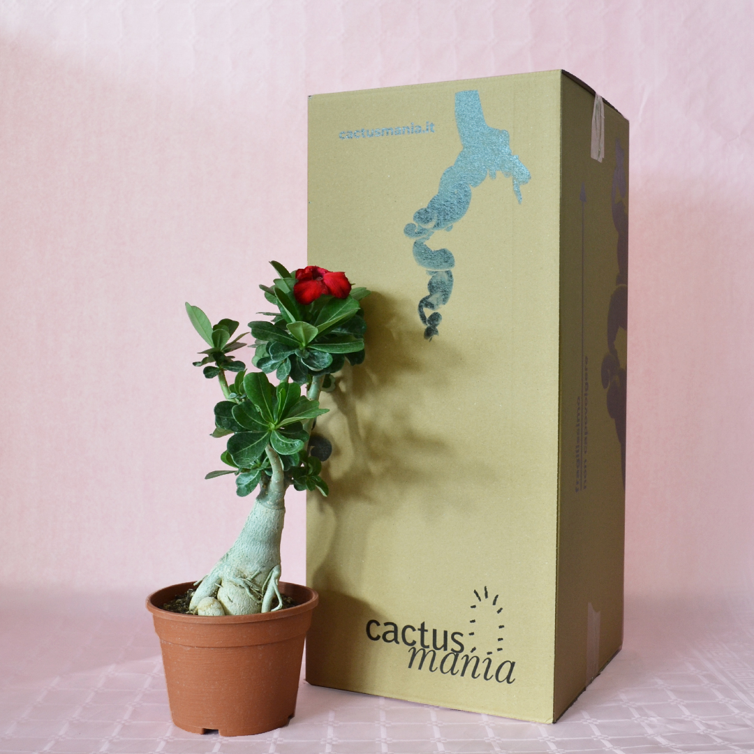 Appartenente alla famiglia delle Apocynacee, questa pianta di Adenium obesum ”B”, viene fornita in vaso Ø 16 con etichetta recante il nome botanico.