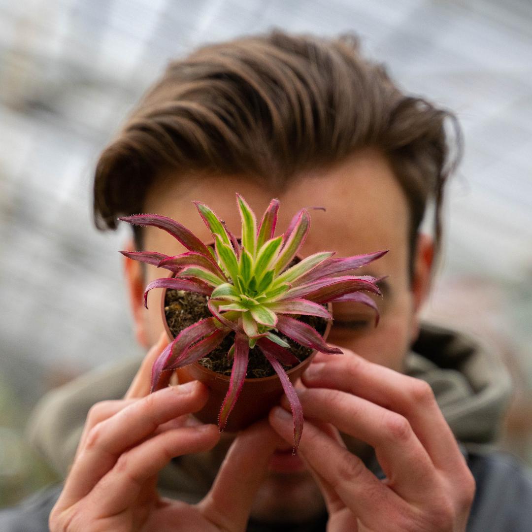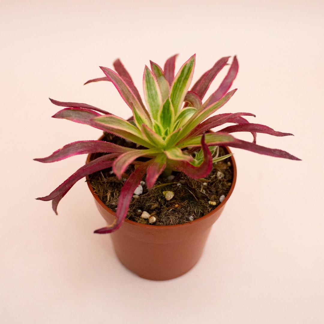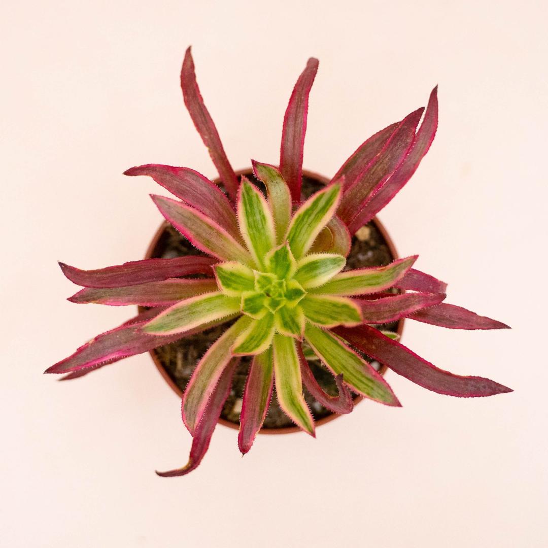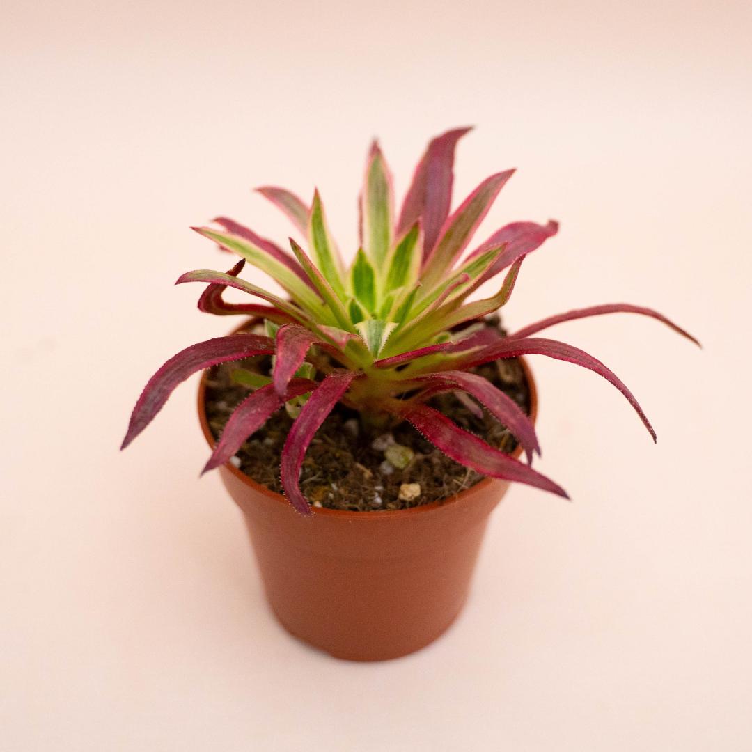 L’Aeonium Firecracker viene fornito in vaso Ø 8,5 cm con etichetta recante il nome botanico.