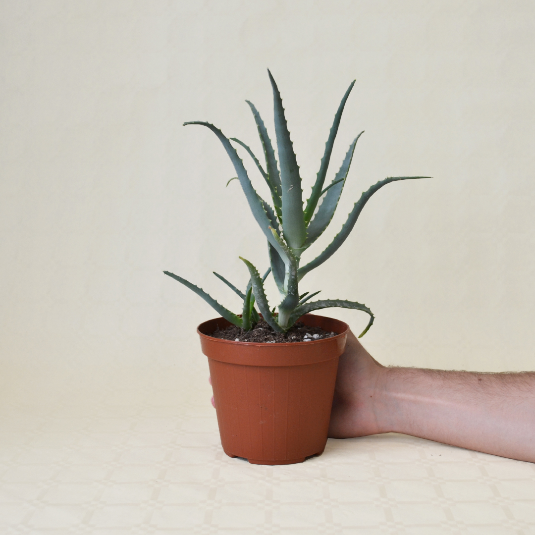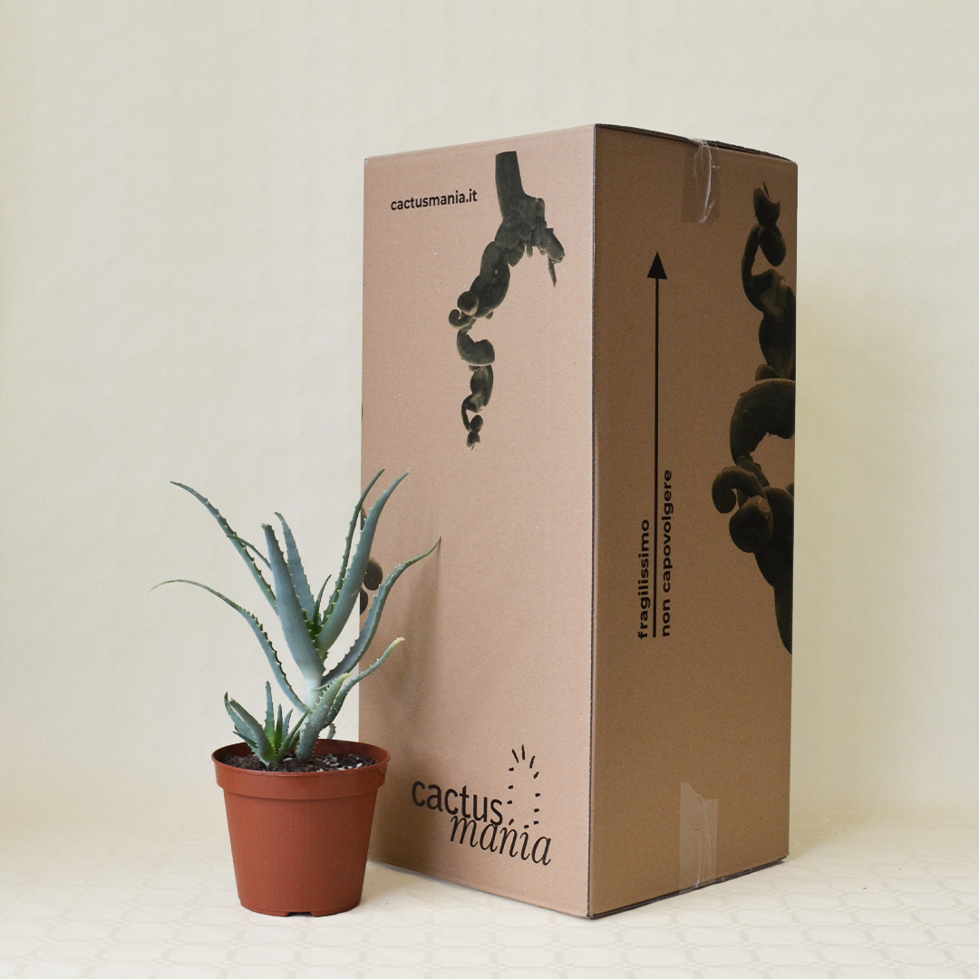 Appartenente alla famiglia delle Asphodelaceae, questa pianta di Aloe arborescens viene fornita in vaso Ø 14 con etichetta recante il nome botanico.