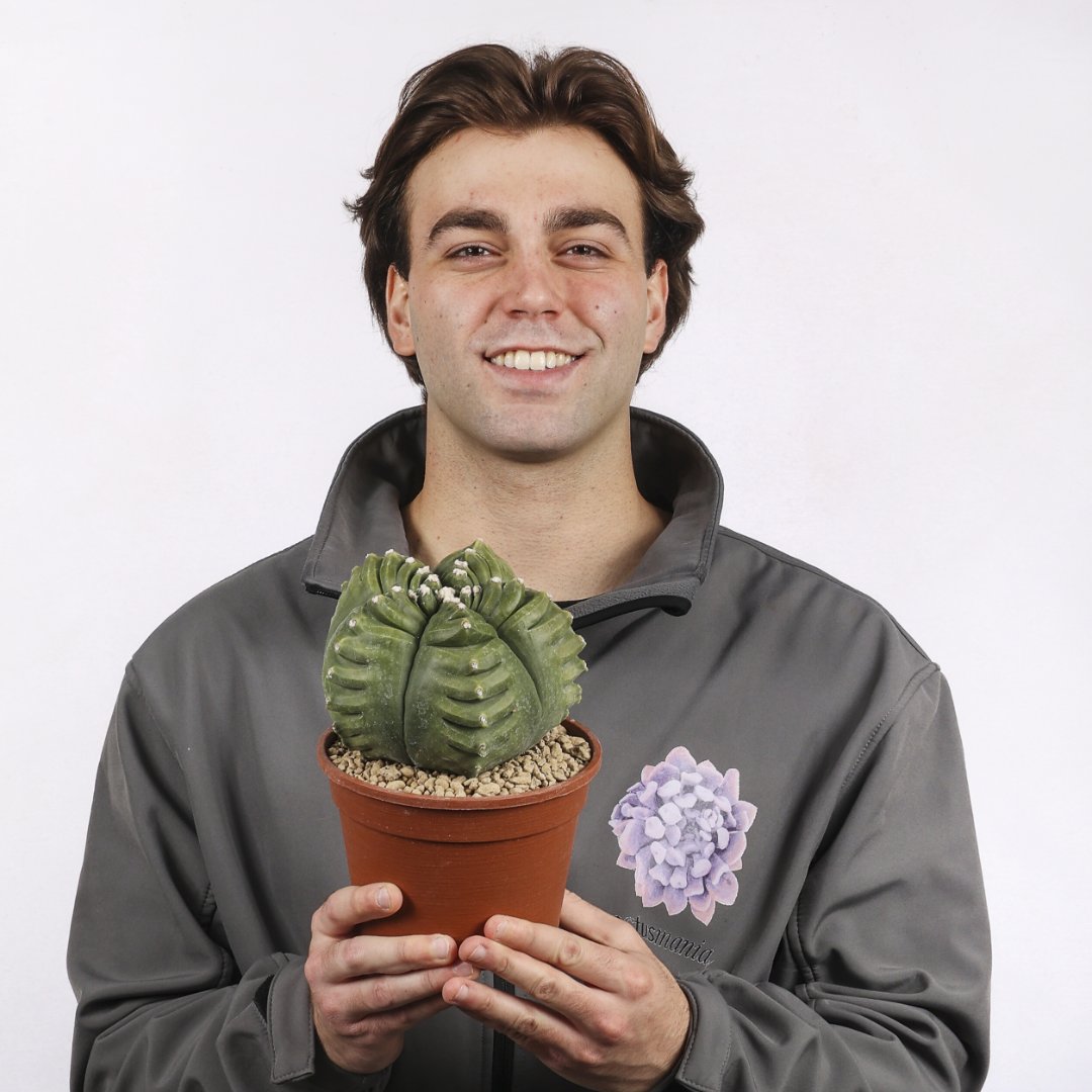 Astrophytum myriostigma kikko nudum ‘Swarovski’, capolavoro che sembra intagliato a mano. Geometricamente perfetto. Un gioiello per collezionisti. l’Astrophytum incanta gli appassionati con le sue forme tutte diverse e uniche tra loro. Con le sue fioriture gialle luminose, unisce straordinarietà e resistenza. Un capolavoro del deserto. Richiede poche cure, ama la luce e teme i ristagni d’acqua. Perfetta per collezionisti e amanti di rarità.