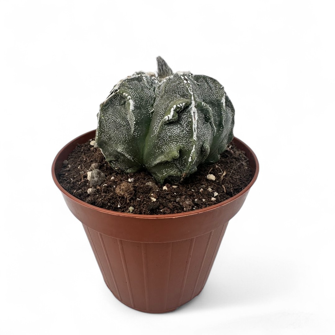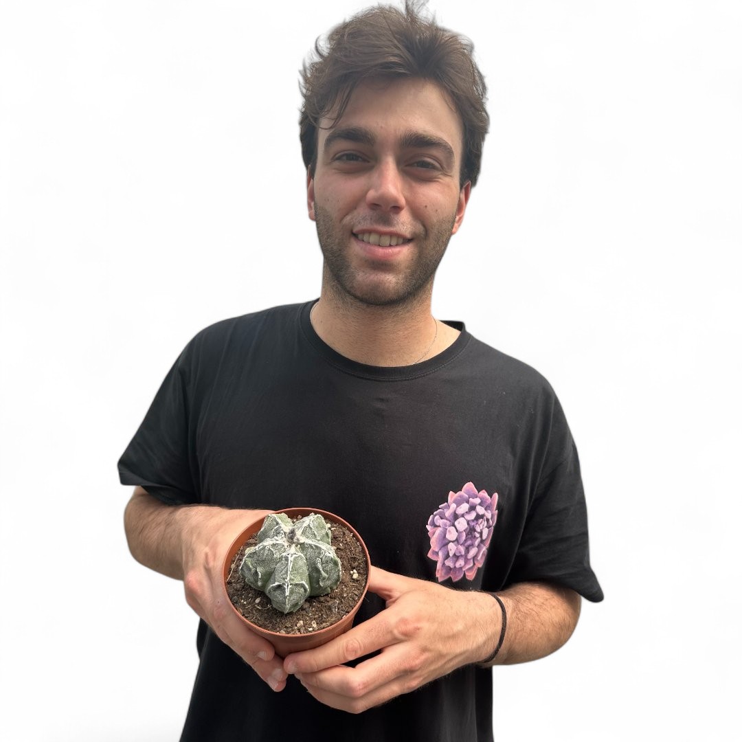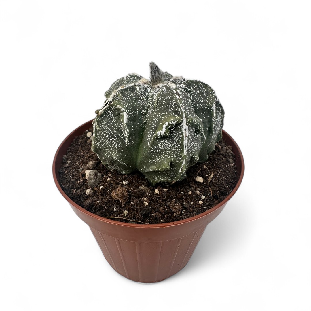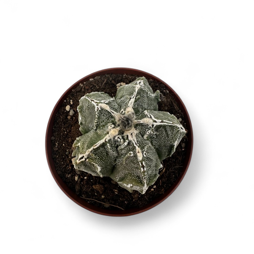 Appartenente alla famiglia delle Cactaceae, questa pianta rara di Astrophytum myriostigma Fukuryu è fornita in un vaso Ø 12 cm con un’etichetta che ne riporta il nome botanico.
