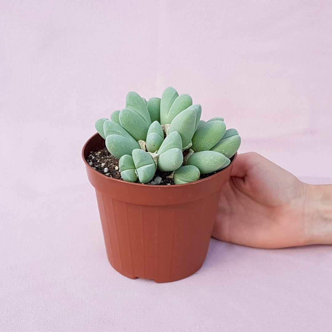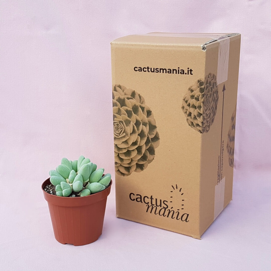Appartenente alla famiglia delle Aizoaceae, questa pianta di Cheiridopsis pillansii viene fornita in vaso Ø 12 con etichetta recante il nome botanico.