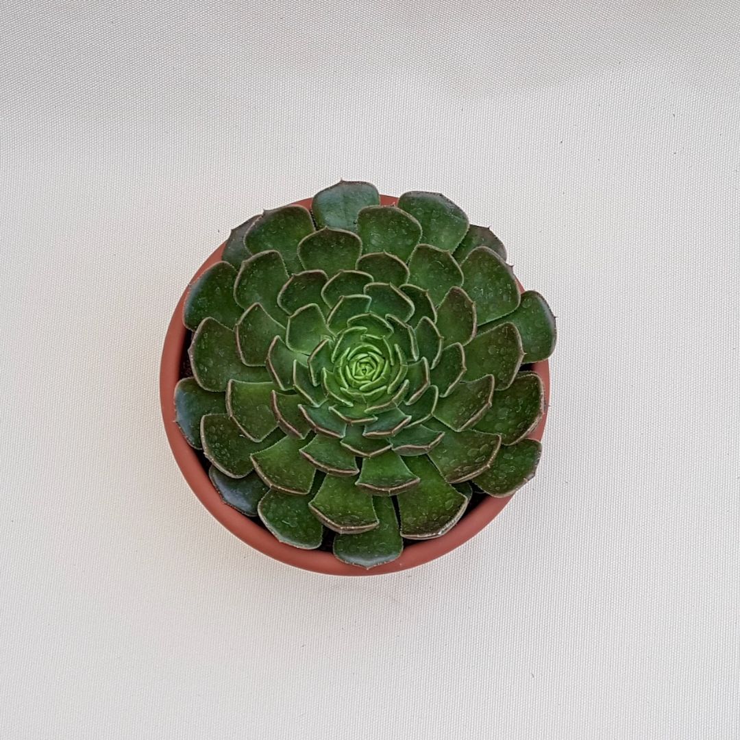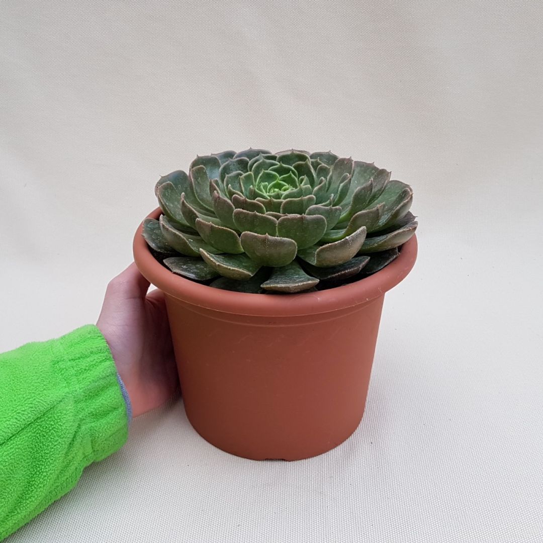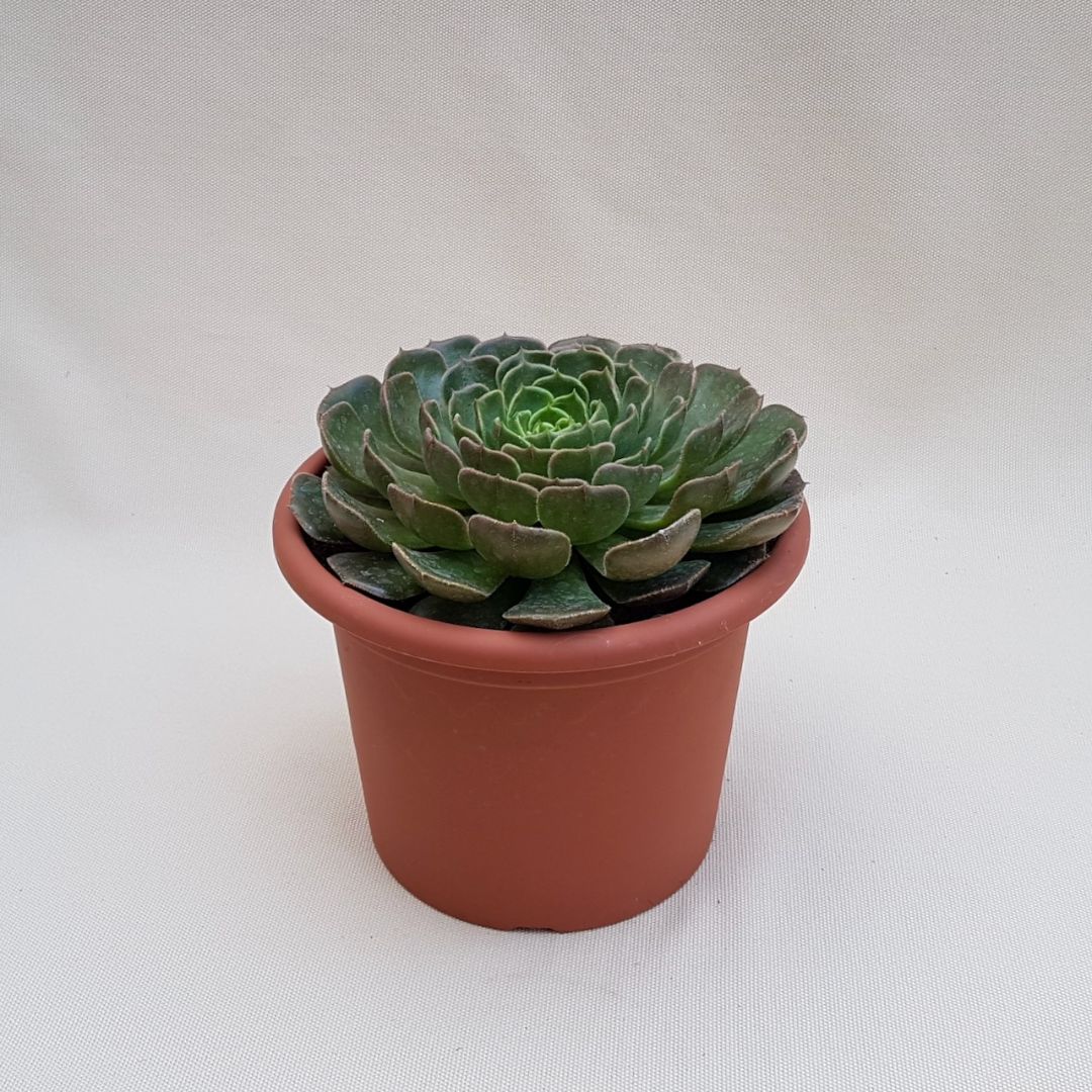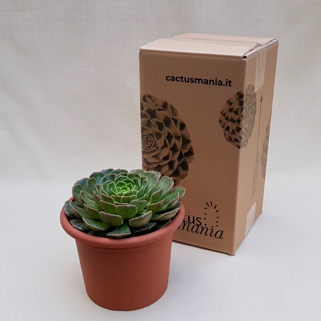 Appartenente alla famiglia delle Crassulaceae, questa pianta di Echeveria ‘Brown Rose’ viene fornita in vaso Ø 18 cm con etichetta recante il nome botanico.