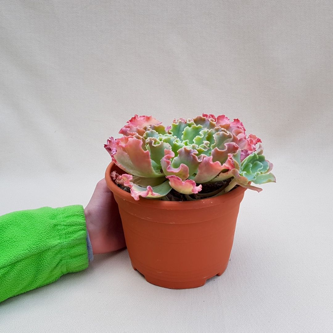 Appartenente alla famiglia delle Crassulaceae, questa pianta di Echeveria ‘Dorothy’ viene fornita in vaso Ø 18 cm con etichetta recante il nome botanico.