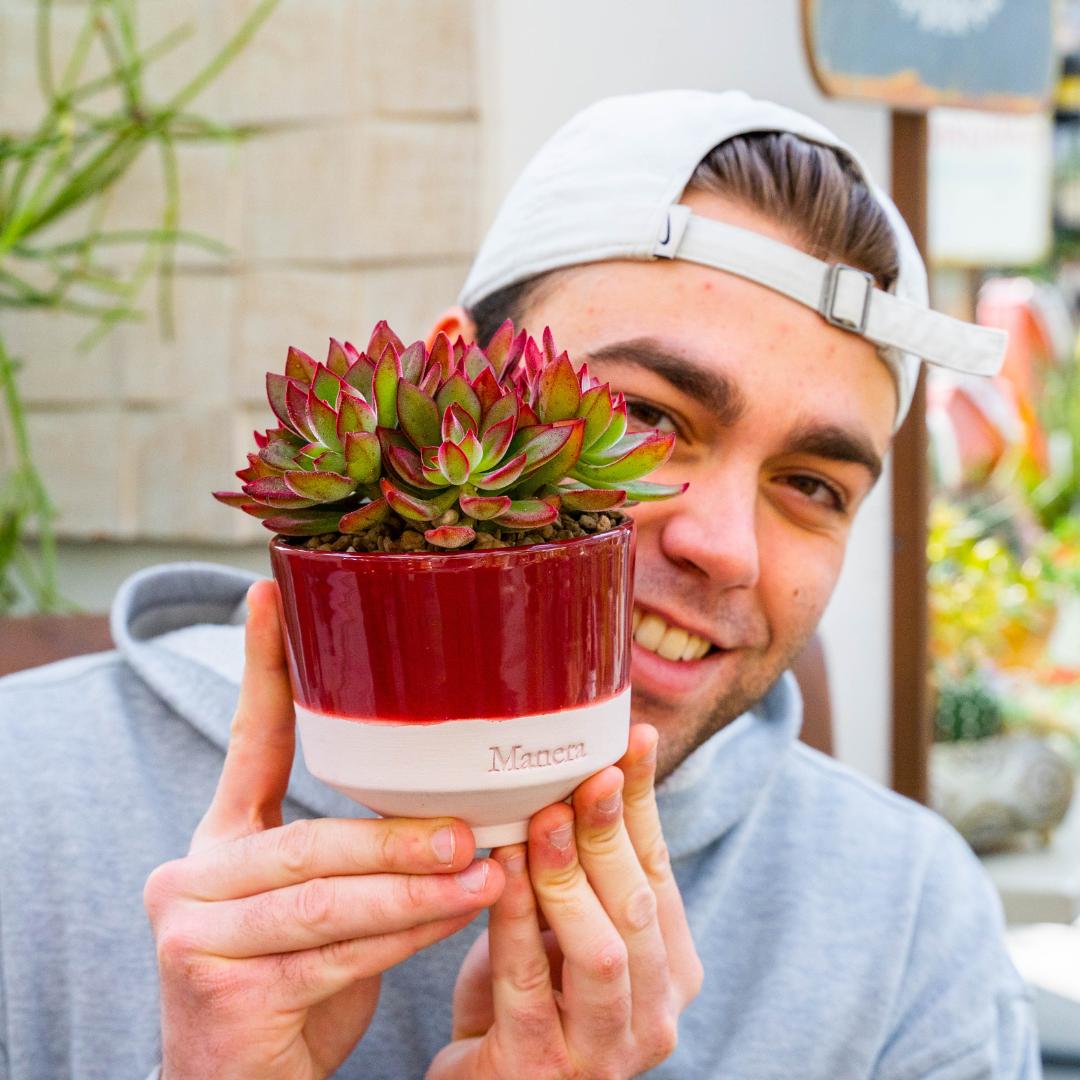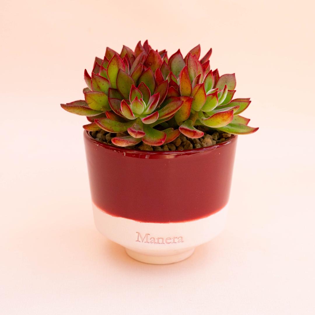 Appartenente alla famiglia delle Crassulaceae, questa pianta di Echeveria pulvinata Devotion viene fornita nell’elegante vaso in terracotta Manera Ø 13 cm con etichetta recante il nome botanico.