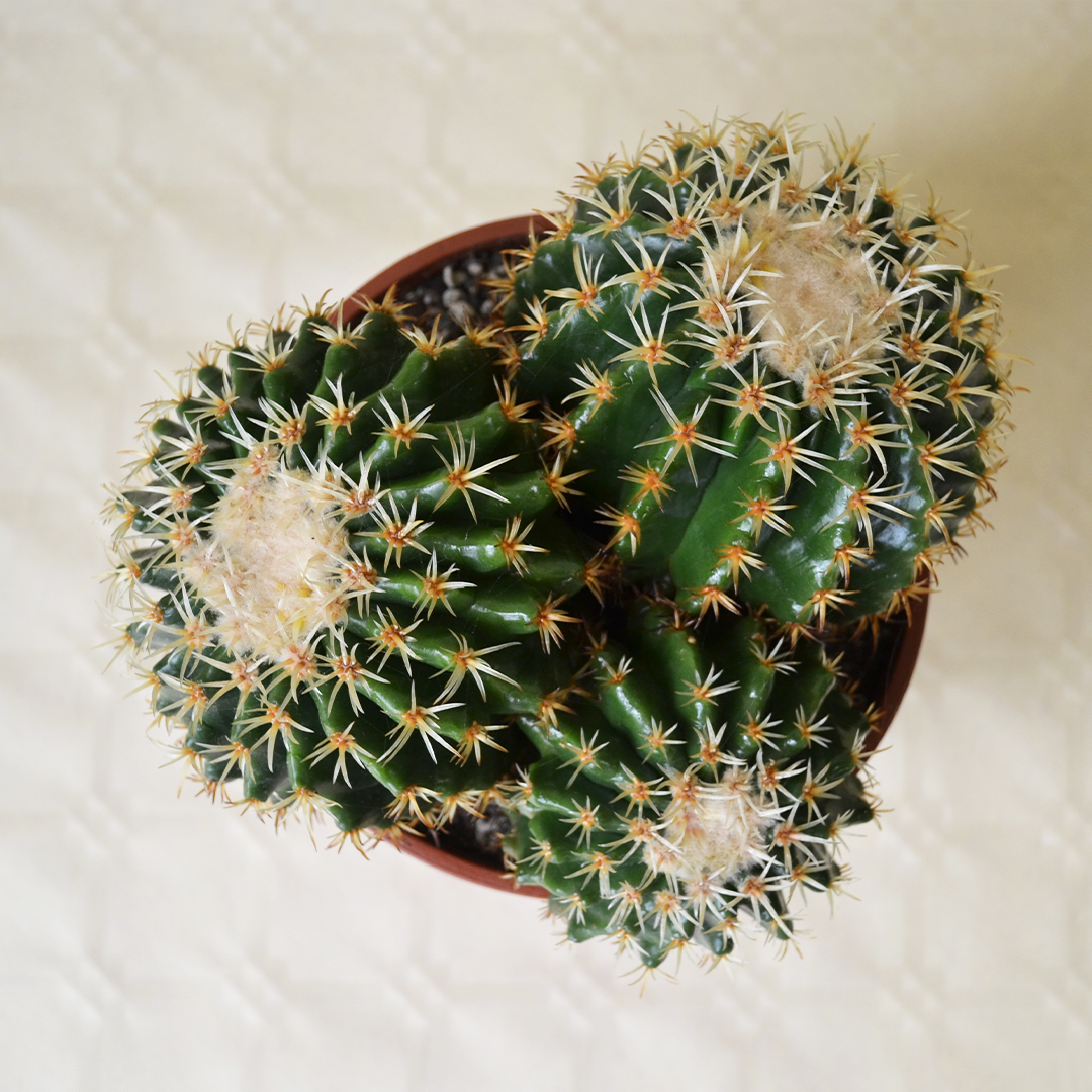 L’Echinocactus grusonii, comunemente conosciuto come "cuscino della suocera", è una succulenta affascinante che si fa notare per la sua forma rotonda e l’unicità delle sue spine. Originaria del Messico, in particolare delle zone aride e desertiche, questa pianta può raggiungere dimensioni significative, arrivando fino a un metro di altezza. La sua conformazione, simile a un cuscino, unita a un vivace colore verde, la rende un elemento interessante sia per giardini che per interni.