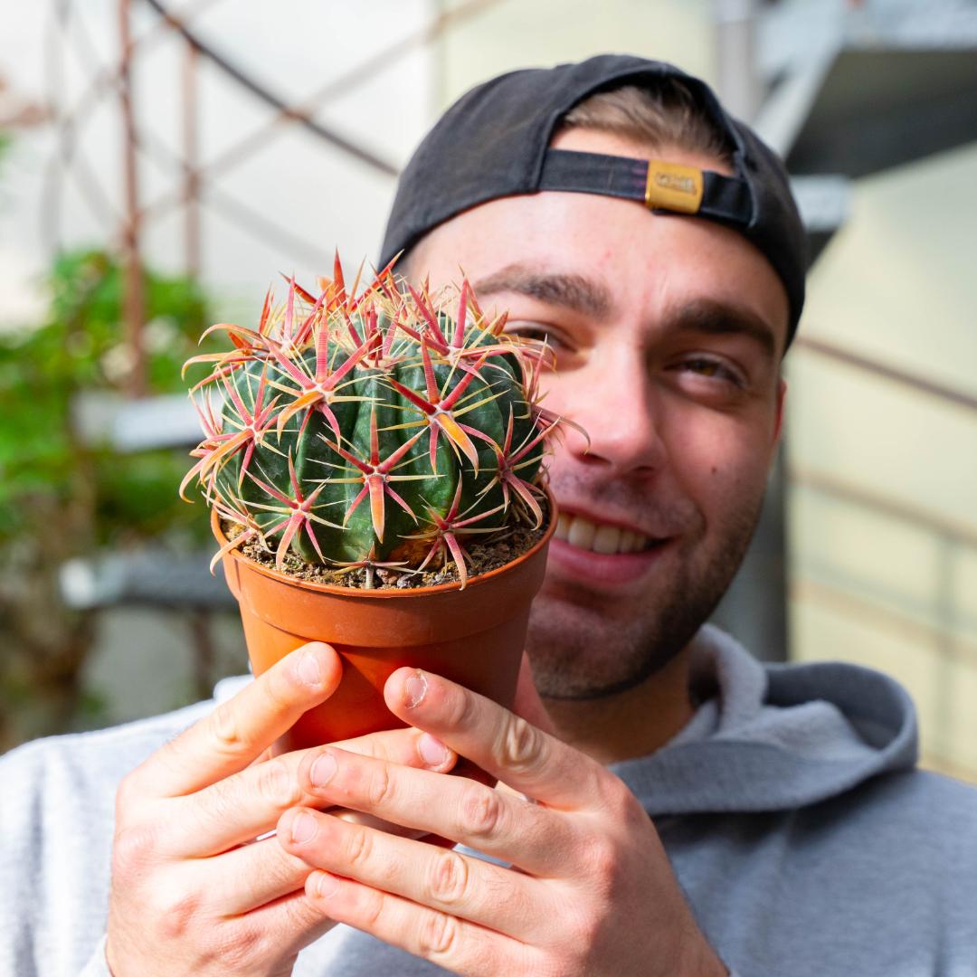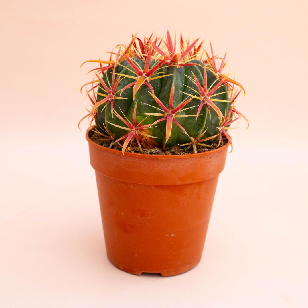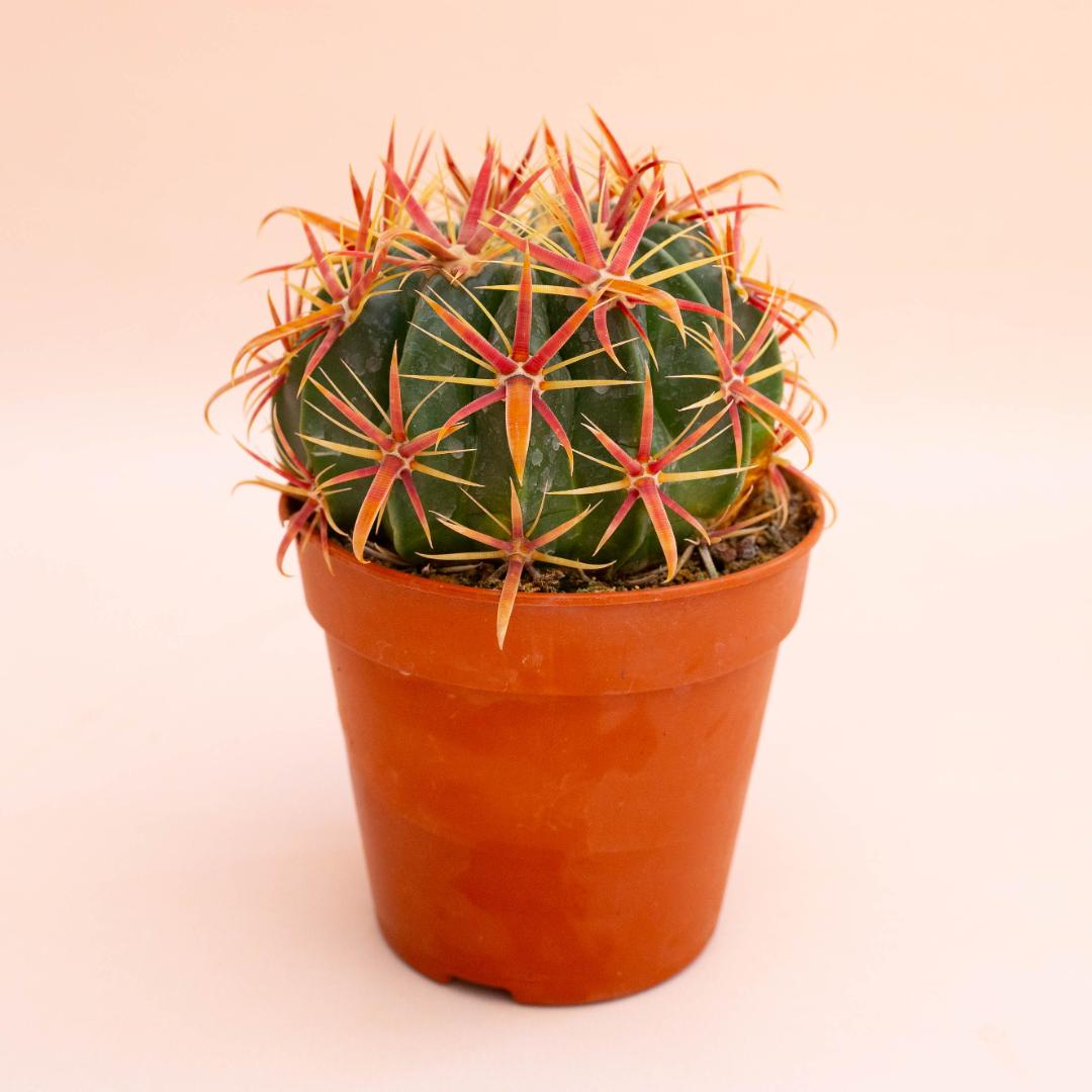 Il Ferocactus latispinus viene fornito in vaso Ø 12 cm con etichetta recante il nome botanico.