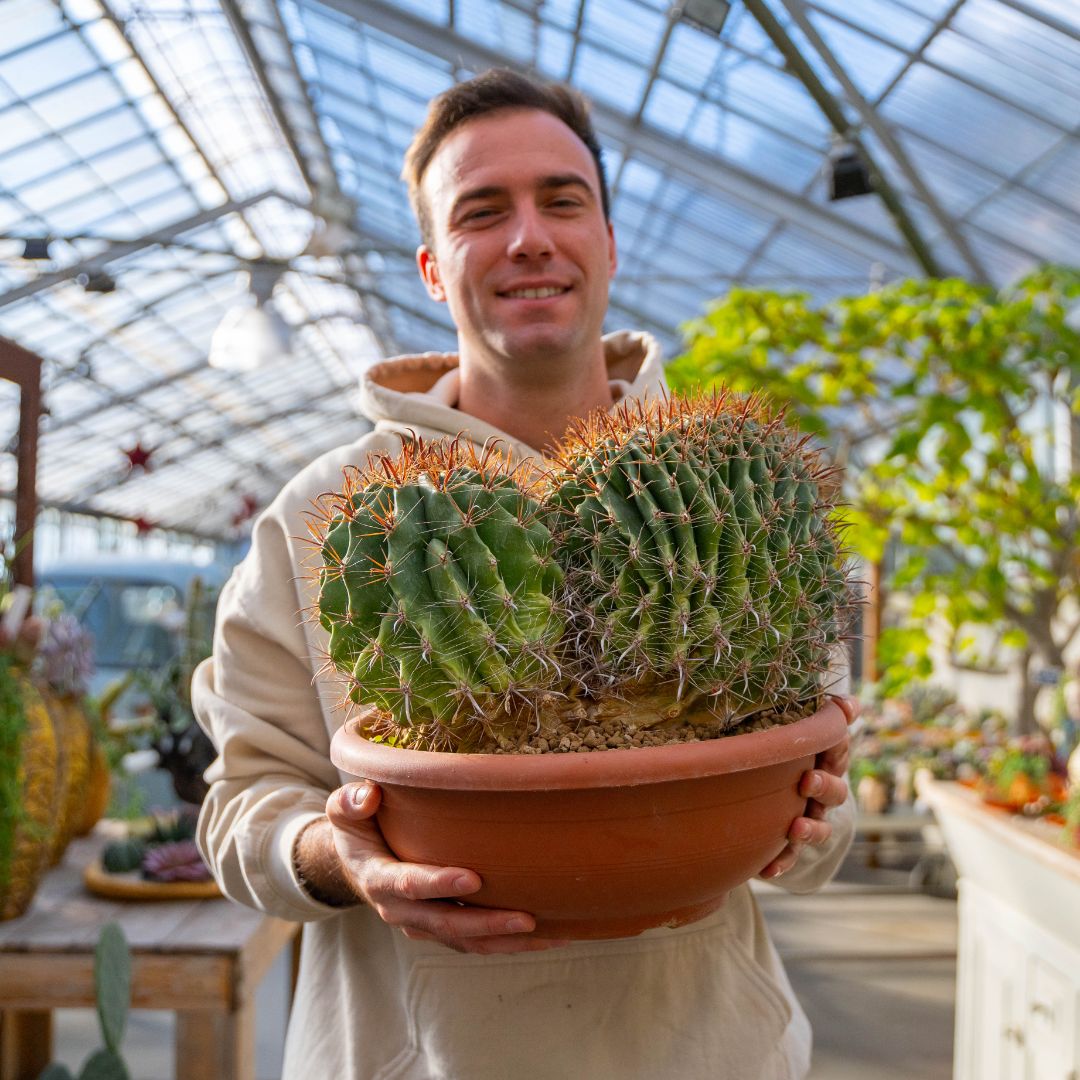 Il Ferocactus wislizeni crestato viene fornito in vaso Ø 25 cm con etichetta recante il nome botanico. Questo Ferocactus fa parte della collezione di ibridi di Cactusmania, è stato coltivato a lungo e selezionato per la sua ipnotica unicità.