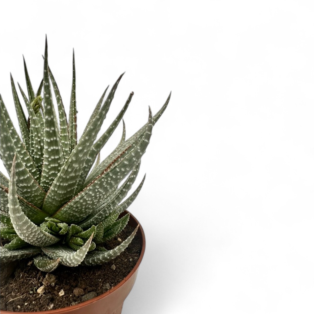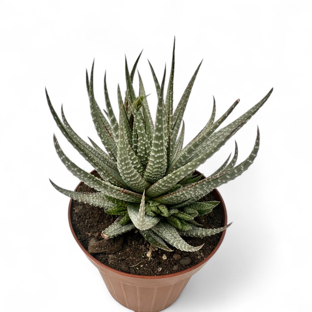 Appartenente alla famiglia delle Asphodelaceae, questa Haworthia fasciata hybrid variegata è fornita in un vaso Ø 12 cm. Questa Haworthia fasciata hybrid variegata di rara bellezza, saprà donare un tocco unico e naturale a ogni ambiente.