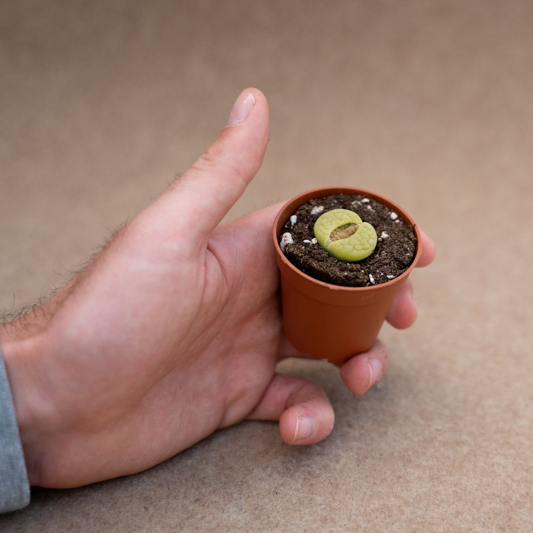 Il Lithops hookeri v. lutea cv. Aubarede C 038A viene fornito in vaso Ø 5,5 cm con etichetta recante il nome botanico. Questo Lithops fa parte della collezione di ibridi di Cactusmania, è stato coltivato a lungo e selezionato per la sua ipnotica unicità.