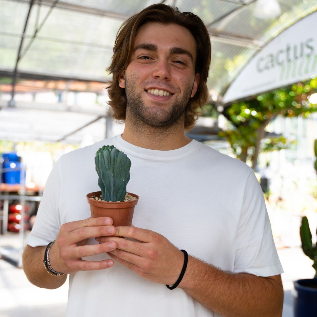 Appartenente alla famiglia delle Cactaceae, questa pianta di Myrtillocactus geometrizans crestato viene fornita in vaso Ø 10 cm con etichetta recante il nome botanico.