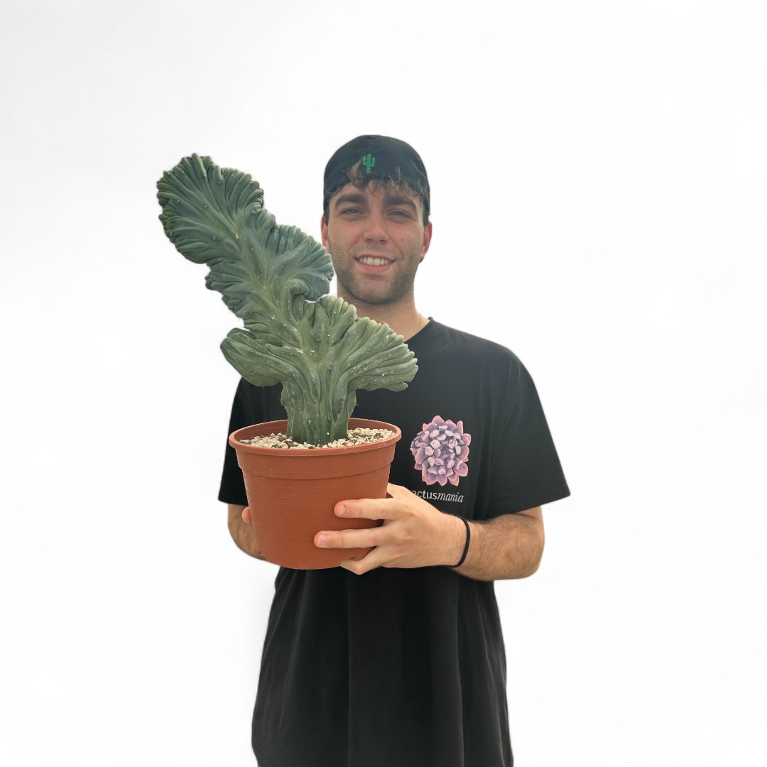 Appartenente alla famiglia delle Cactaceae, questa pianta rara di Myrtillocactus geometrizans crestato è fornita in un vaso Ø 20 cm con un’etichetta che ne riporta il nome botanico.
