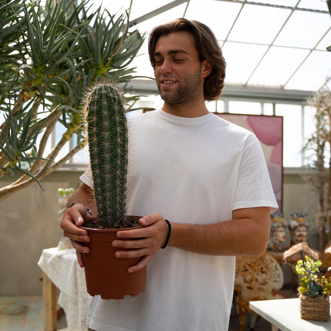 Appartenente alla famiglia delle Cactaceae, questa pianta di Pachycereus pringlei viene fornita in vaso Ø 21 cm con etichetta recante il nome botanico.