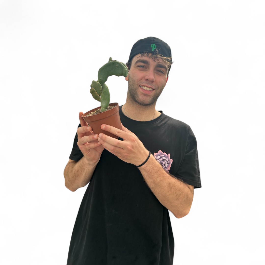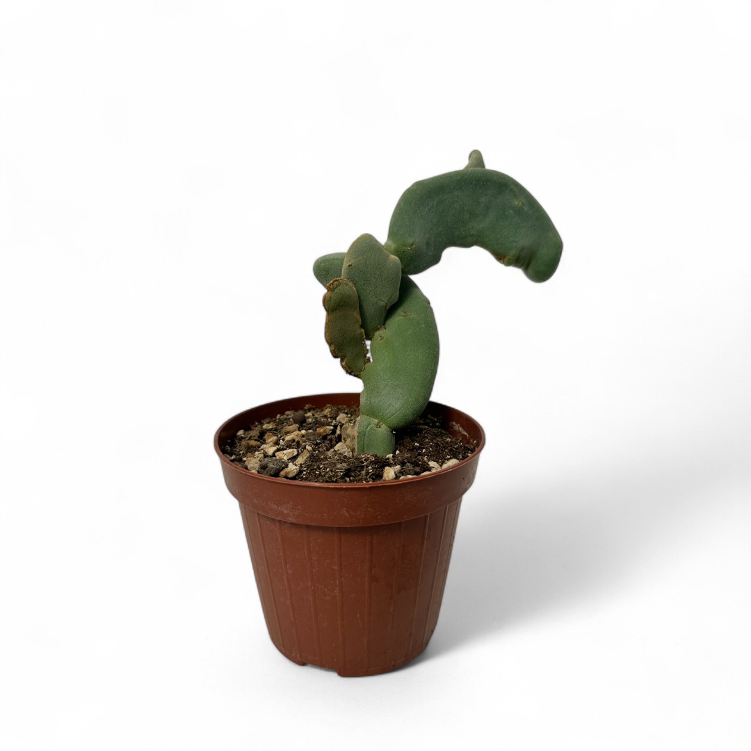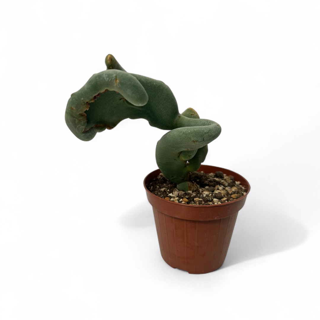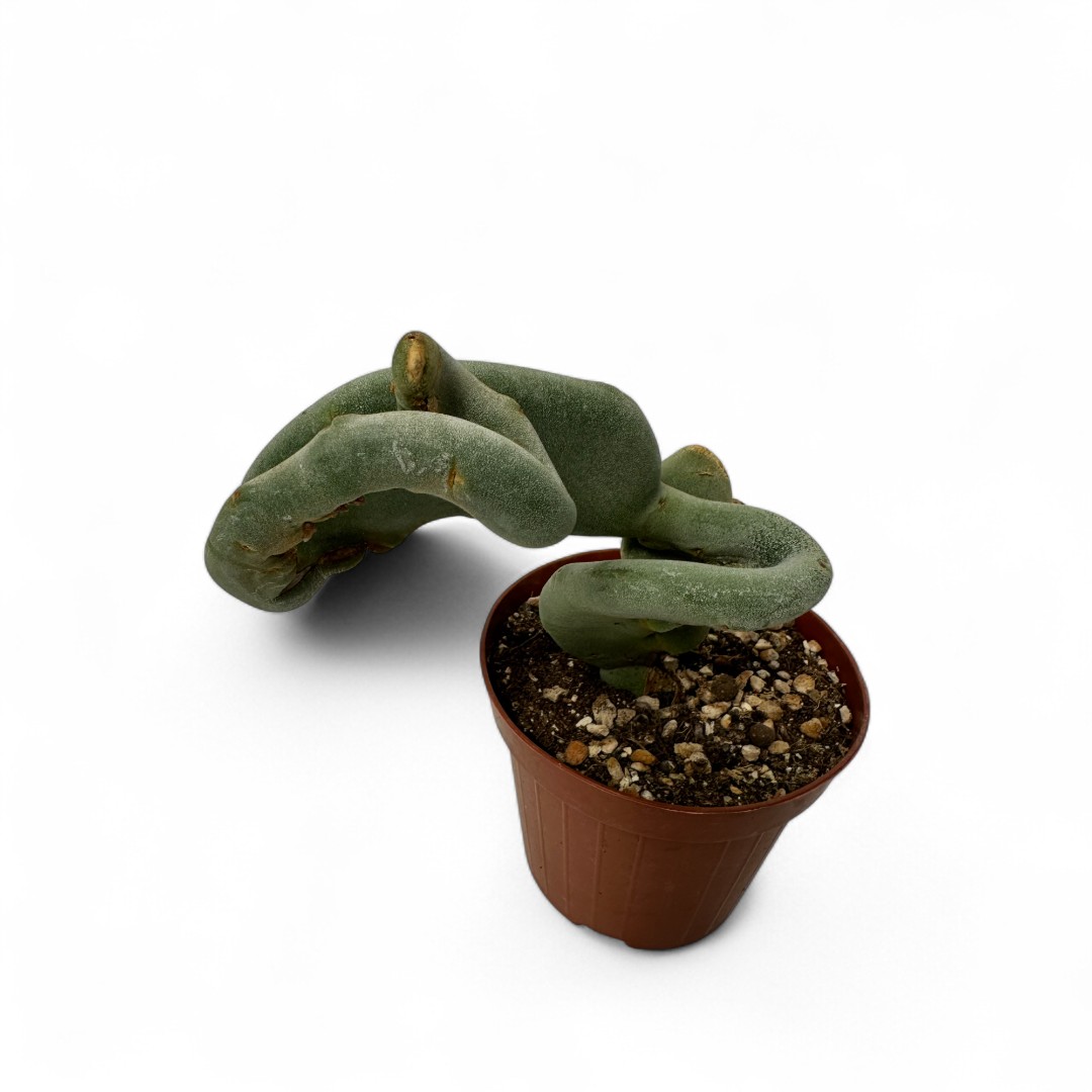 Appartenente alla famiglia delle Euphorbiaceae, questa pianta rara di Pedilanthus macrocarpus crestato è fornita in un vaso Ø 12 cm con un’etichetta che ne riporta il nome botanico.