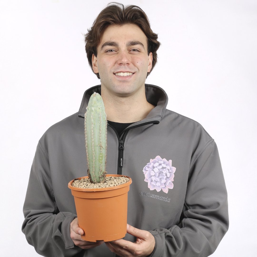 Pilosocereus azureus cv. ‘Plankton’, una delle cultivar più spettacolari e aliene nel panorama dei cactus colonnari blu. Il nome “Plankton” non è casuale: la mutazione genetica stravolge la crescita lineare del classico Pilosocereus azureus, creando una struttura che ricorda un organismo marino. Richiede poche cure, ama la luce e teme i ristagni d’acqua. Perfetta per collezionisti e amanti di rarità.