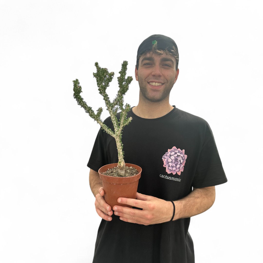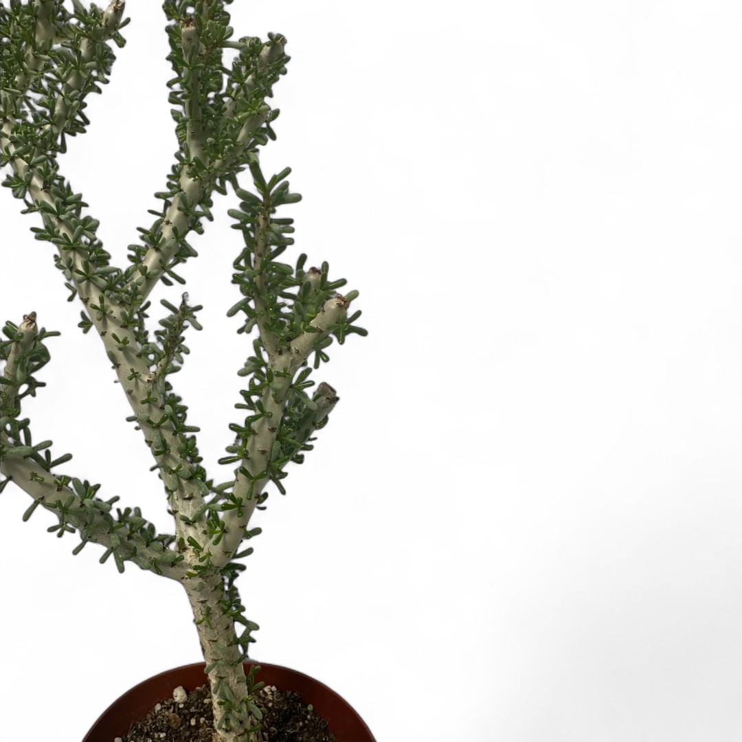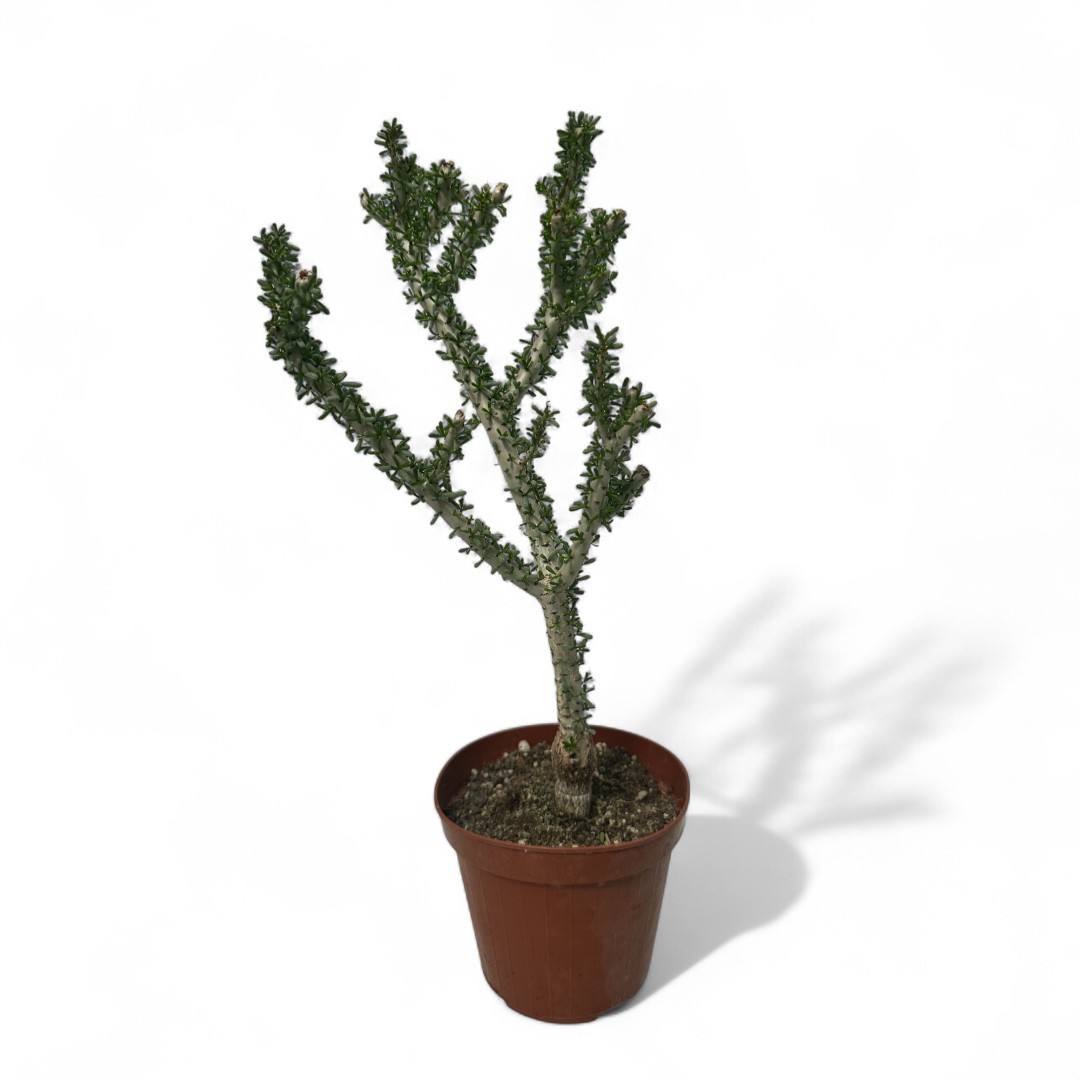 Appartenente alla famiglia delle Didiereaceae, questa pianta rara di Ceraria namaquensis è fornita in un vaso Ø 14 cm con un’etichetta che ne riporta il nome botanico.