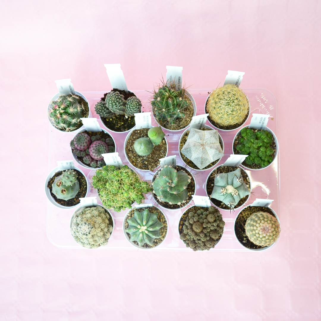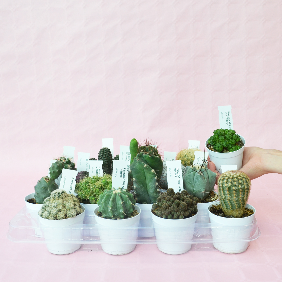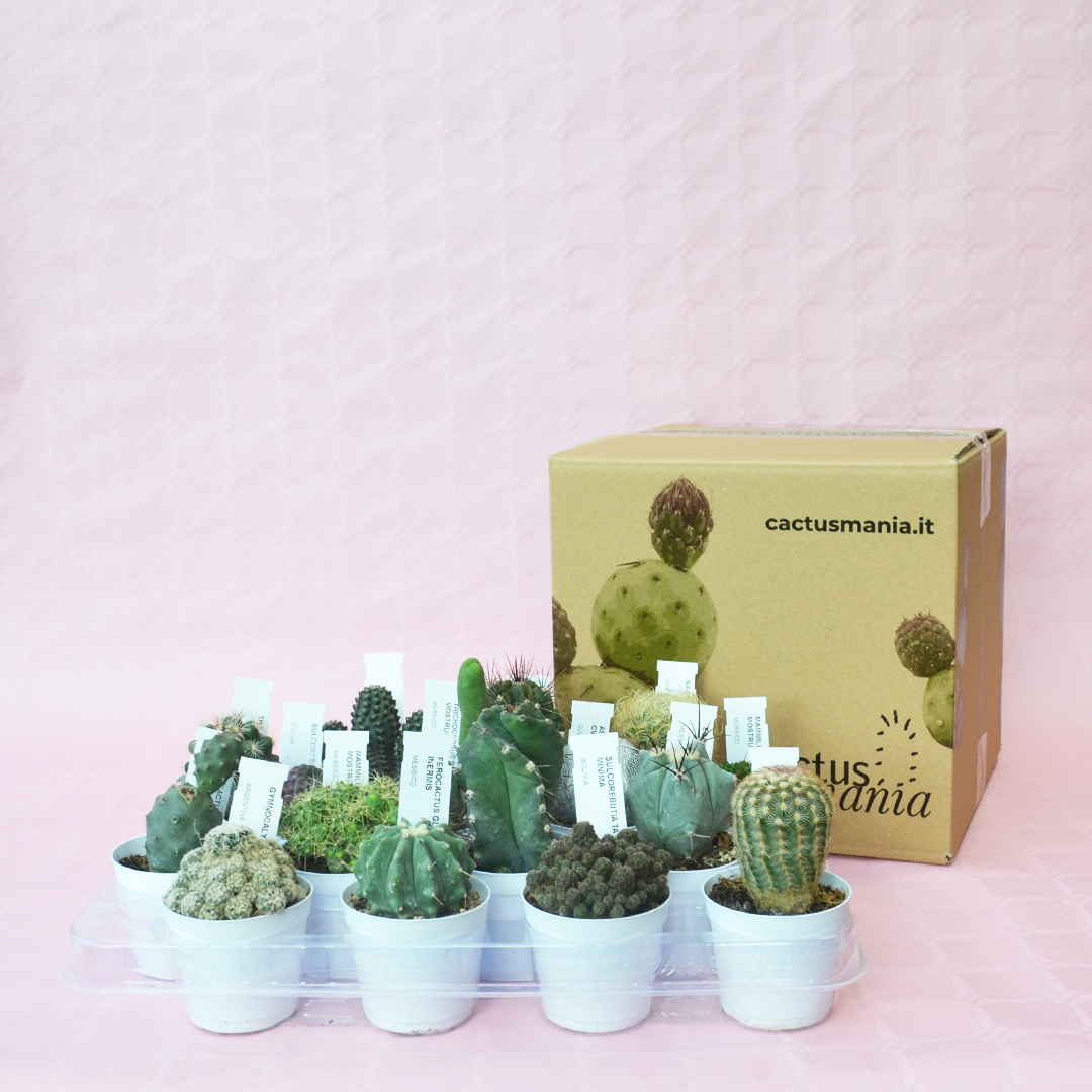 Appartenenti alla famiglia delle Cactaceae, questi 16 cactus assortiti vengono forniti in vaso Ø 7,5 con etichetta recante il nome botanico.