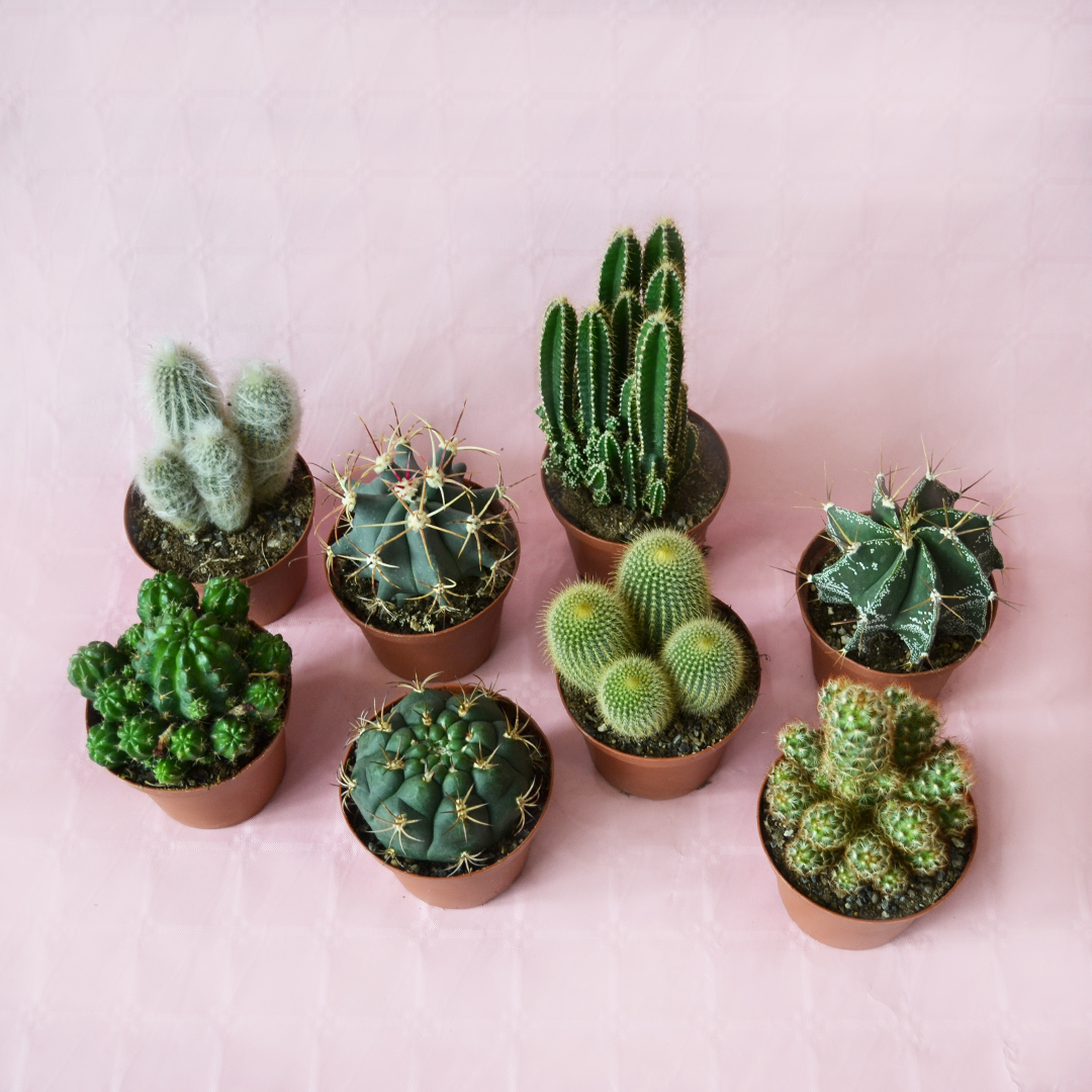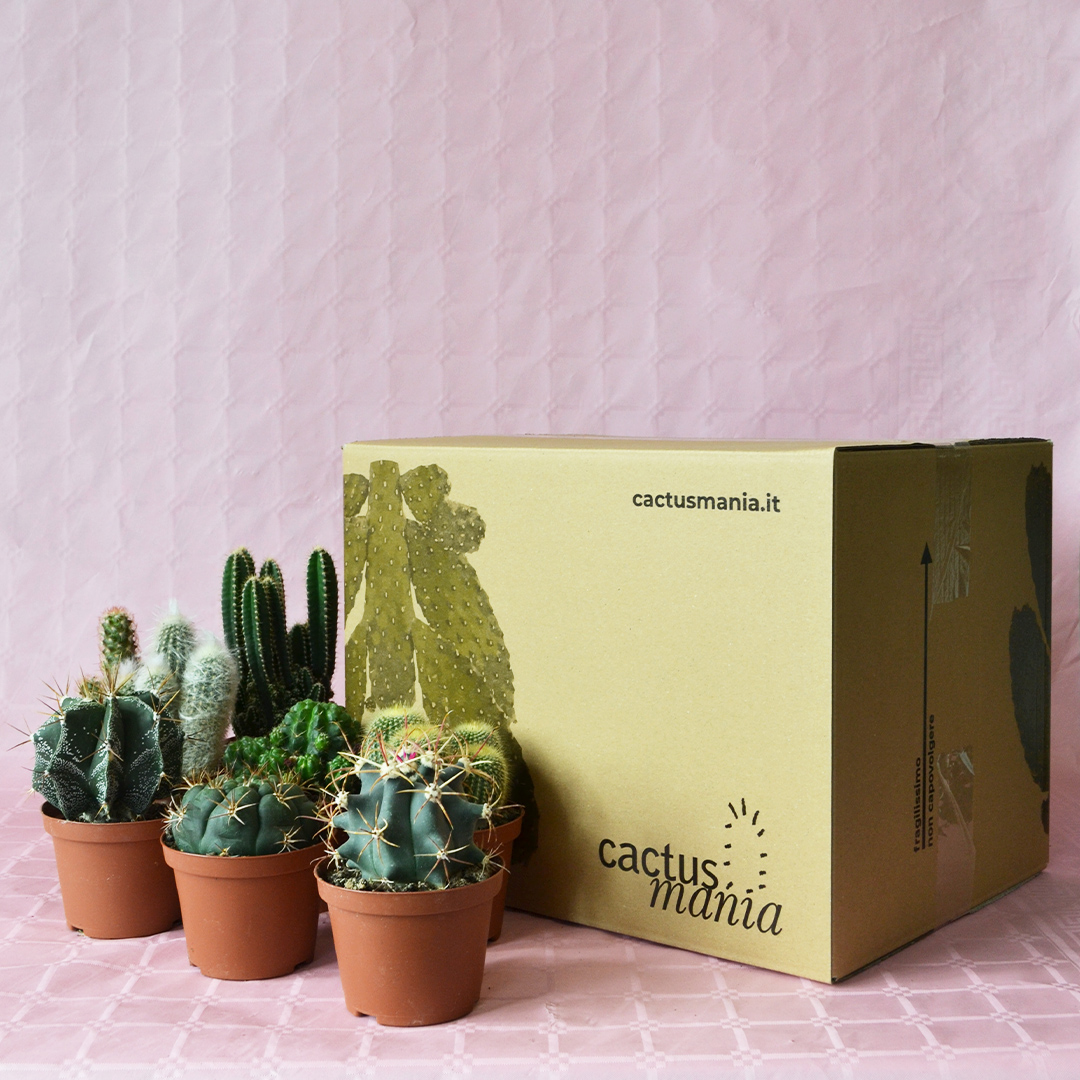 Appartenenti alla famiglia delle Cactaceae, questi 8 cactus assortiti vengono forniti in vaso Ø 10,5 con etichetta recante il nome botanico.