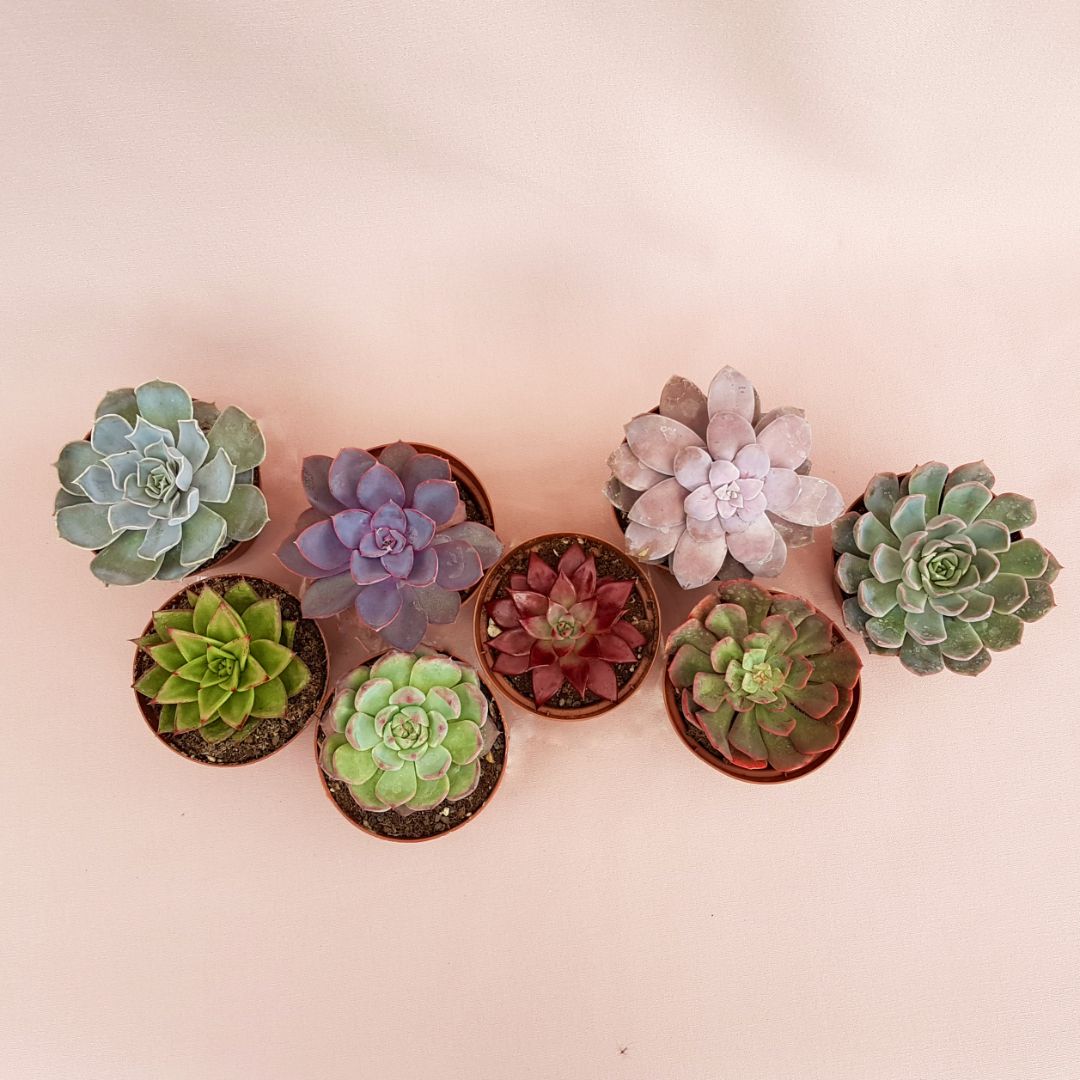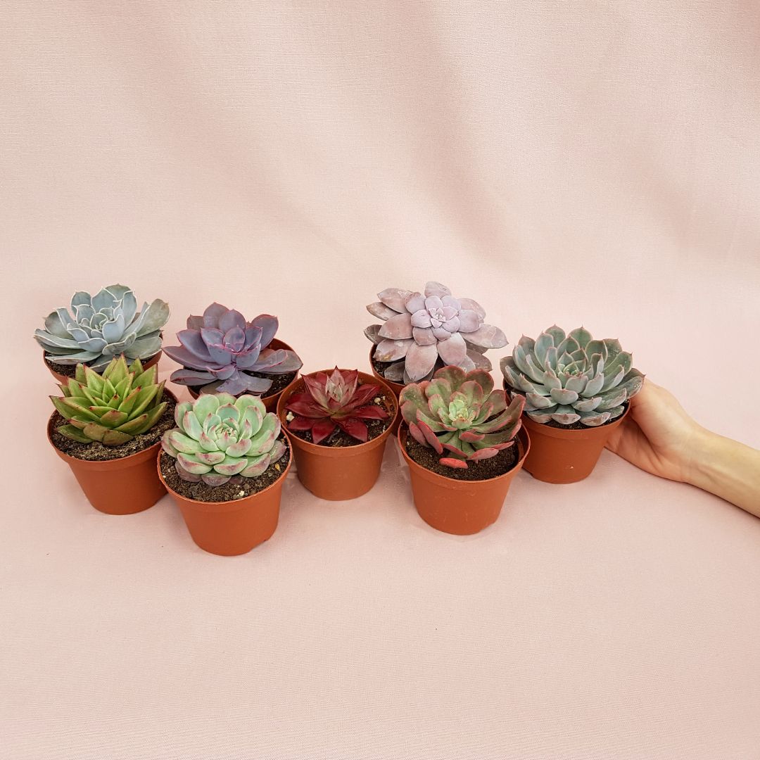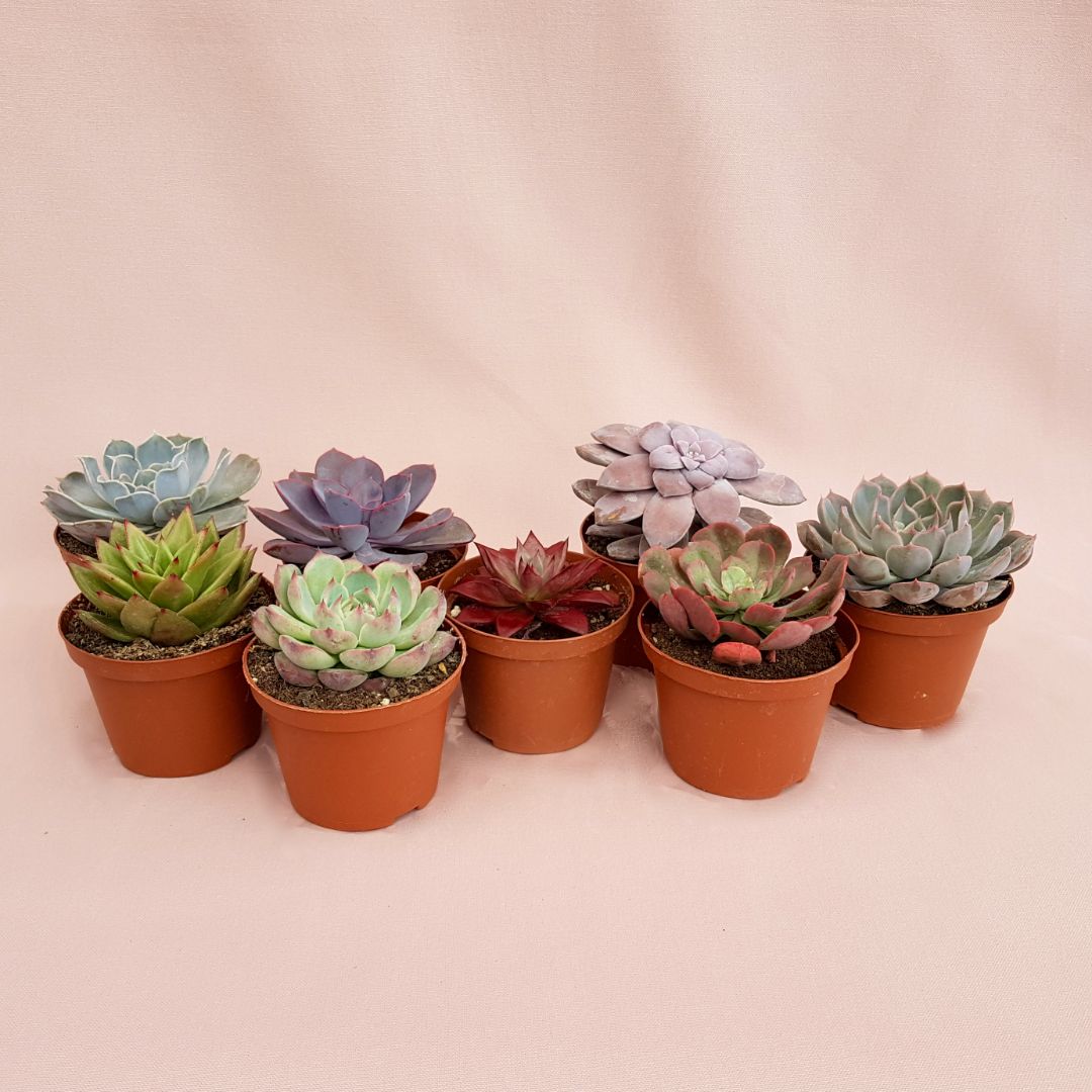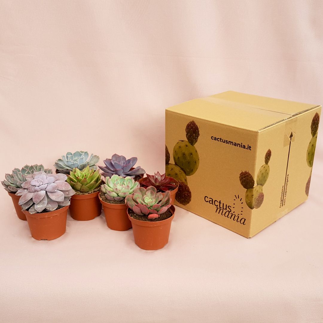 Appartenenti alla famiglia delle Crassulaceae, questo set composto da 8 piante assortite di Echeveria vengono fornite in vaso Ø 10,5 cm con etichetta recante il nome botanico.