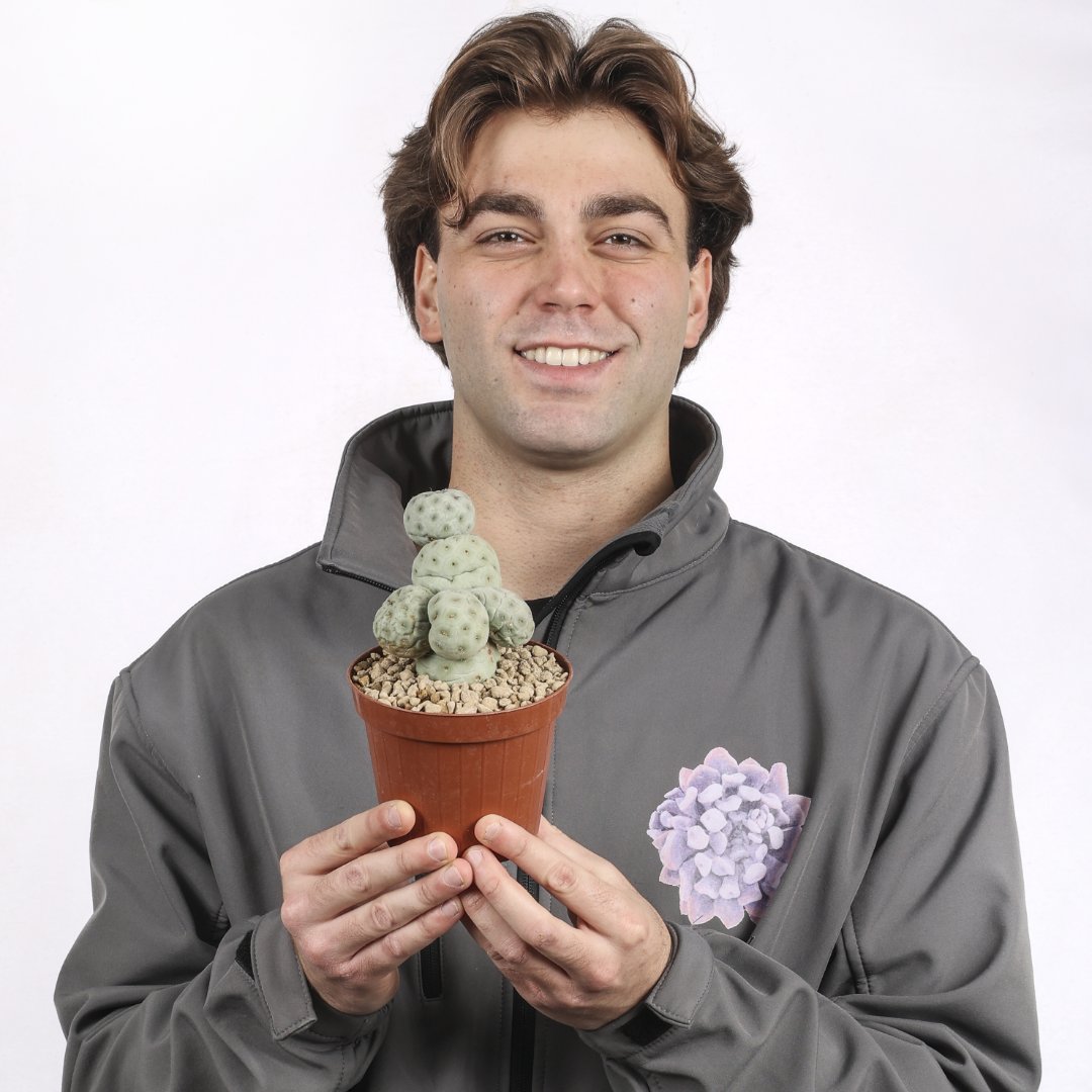 Tephrocactus geometricus crestato, è una forma mutata e rarissima del ricercato Tephrocactus geometricus. Mentre la forma normale cresce per sfere perfette sovrapposte, la versione crestata stravolge completamente questa geometria. Richiede poche cure, ama la luce e teme i ristagni d’acqua. Perfetta per collezionisti e amanti di rarità.